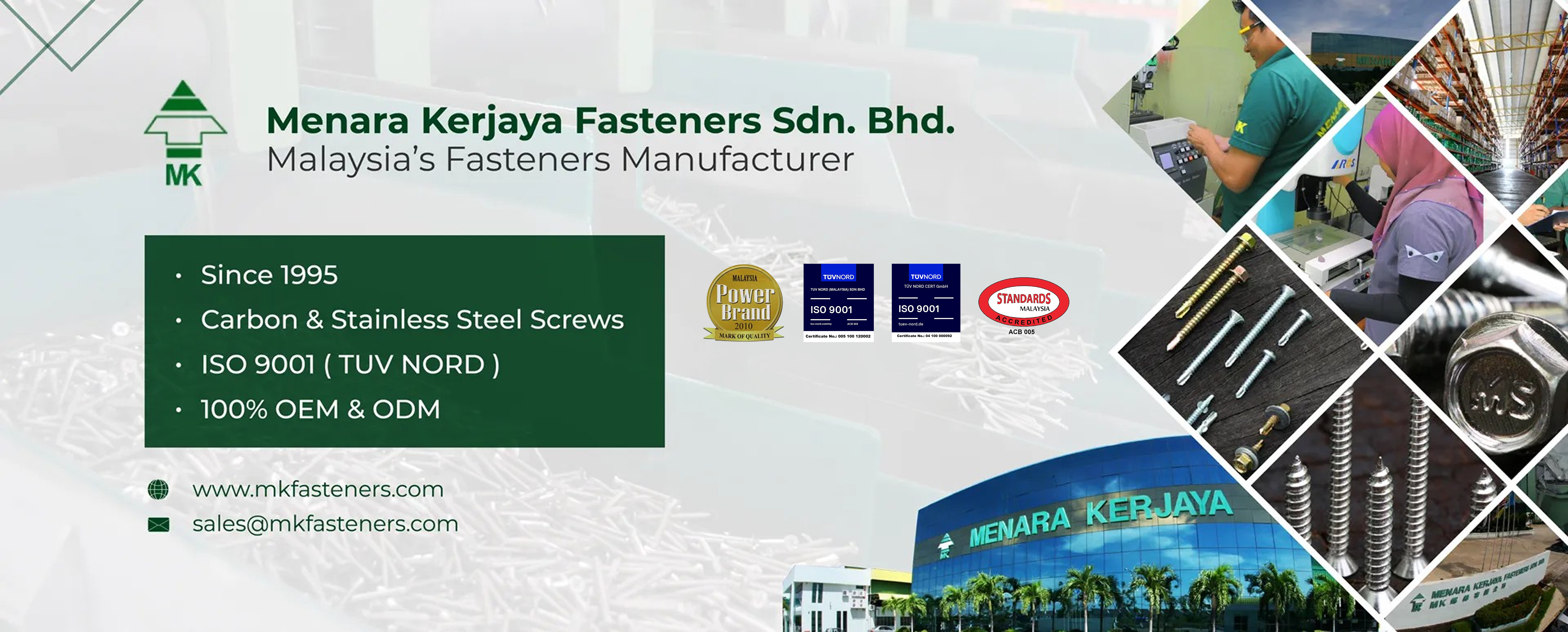 Menara Kerjaya Fasteners Sdn. Bhd. (MK) started production in 1995 with the aim to fill the gap of shortage of supply and increasing demand for quality fasteners in the industry. MK which is located in Perda SMI Industrial Park, Penang, is a 100% Malaysian-owned Fasteners Company and was well established for over 2 decades.